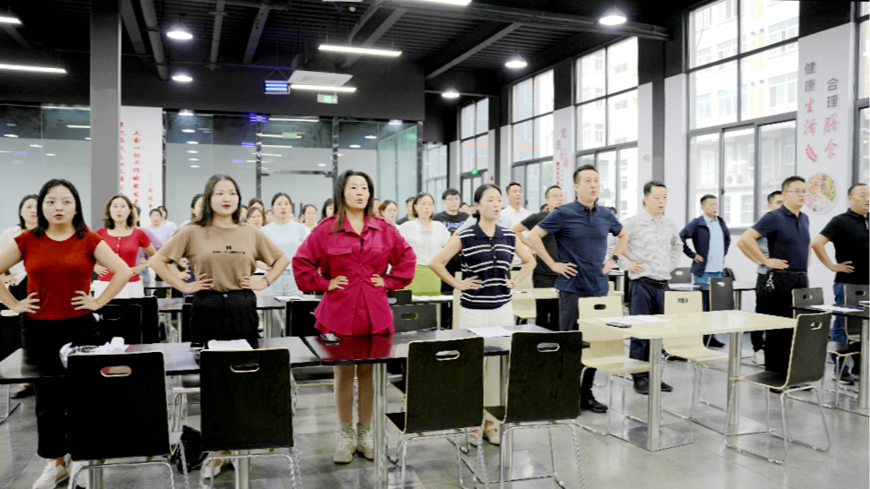 【训练过程中,最让我触动的是大家的集体意识,不少同事、企业家主动调整个人工作安排,确保训练全员参与,遇到声部配合难点时,老同事耐心帮带,年轻同事积极钻研,现在从整齐的节奏到饱满的情感,都能感受到大家对这次比赛的重视,更能感受到团队对祖国的真挚祝福,我们期待在比赛中不仅能展现经开区全体领导干部和企业家的风貌,更能把这份爱国情、奋斗志传递出去。】