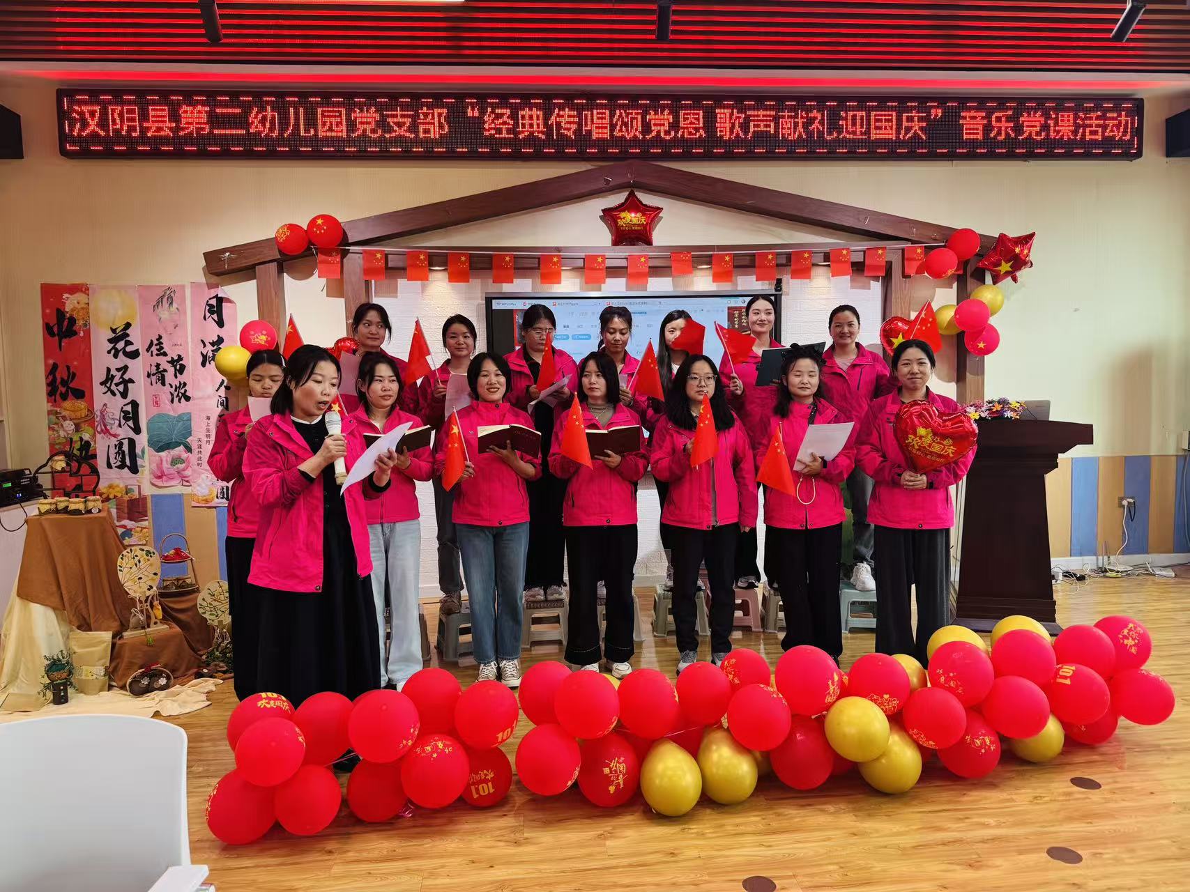9月29日,汉阴县第二幼儿园党支部以“经典传唱颂党恩 歌声献礼迎国庆”为主题开展音乐党课活动。
