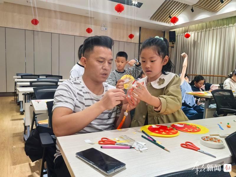 “今天是我第三次来图书馆参加活动,我做的是中秋节的灯笼。每次参加图书馆的活动都觉得很有意思,而且每次的体验都不一样。”活动现场小读者邹诗雨笑着说道。
