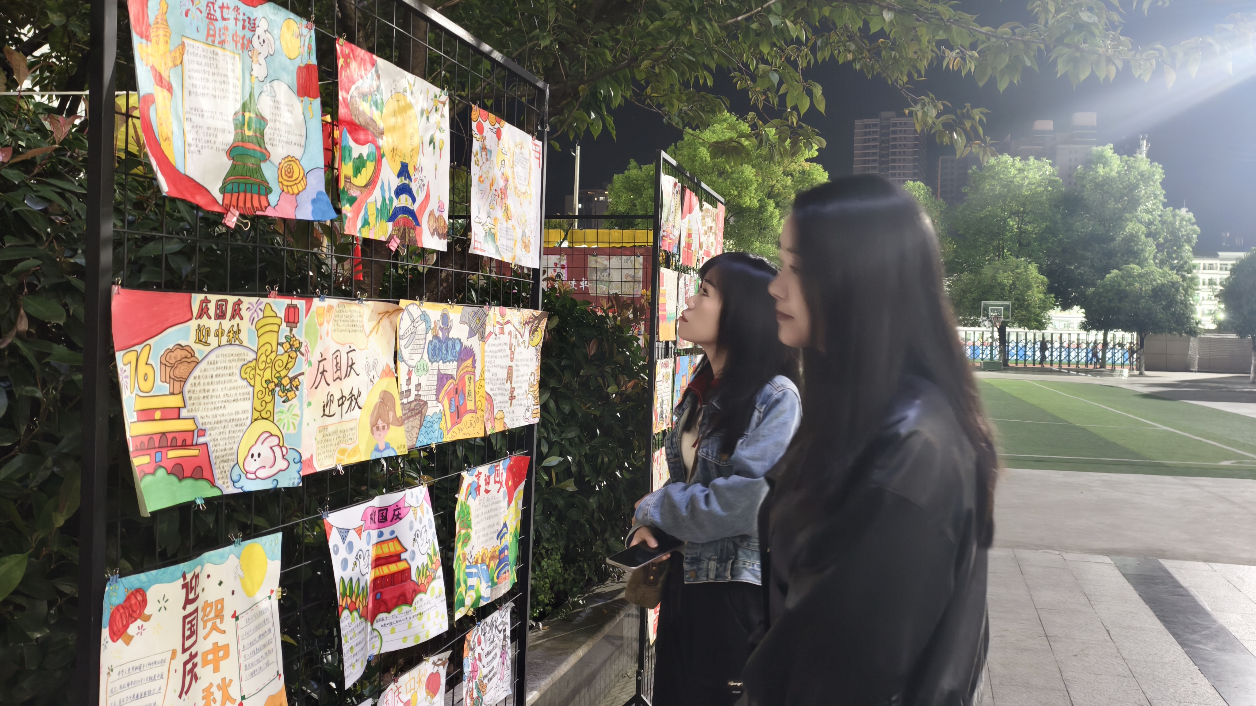 本次展览采用“线上+线下”同步展出的创新模式,极大地拓展了活动的影响力。线下展区吸引了众多学生课余驻足欣赏,共同感受着同伴笔下的家国万象;线上展区则通过学校外宣平台将这份喜悦与创意传递得更远,吸引了众多家长与社会人士的围观点赞。家长们纷纷表示,通过参与和欣赏德育实践作业,不仅看到了孩子的成长,更与孩子一同接受了一次深刻的“家国情怀”洗礼。