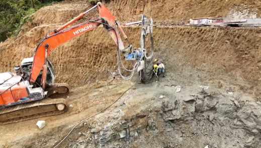 在凤凰山隧道引线工程(进口段)项目建设现场,机器轰鸣,挖掘机挥舞着铲斗挖掘土石,运输车辆往来穿梭,配合默契。工人们铆足干劲,争分夺秒抢抓工期,现场呈现一派热火朝天的施工景象。