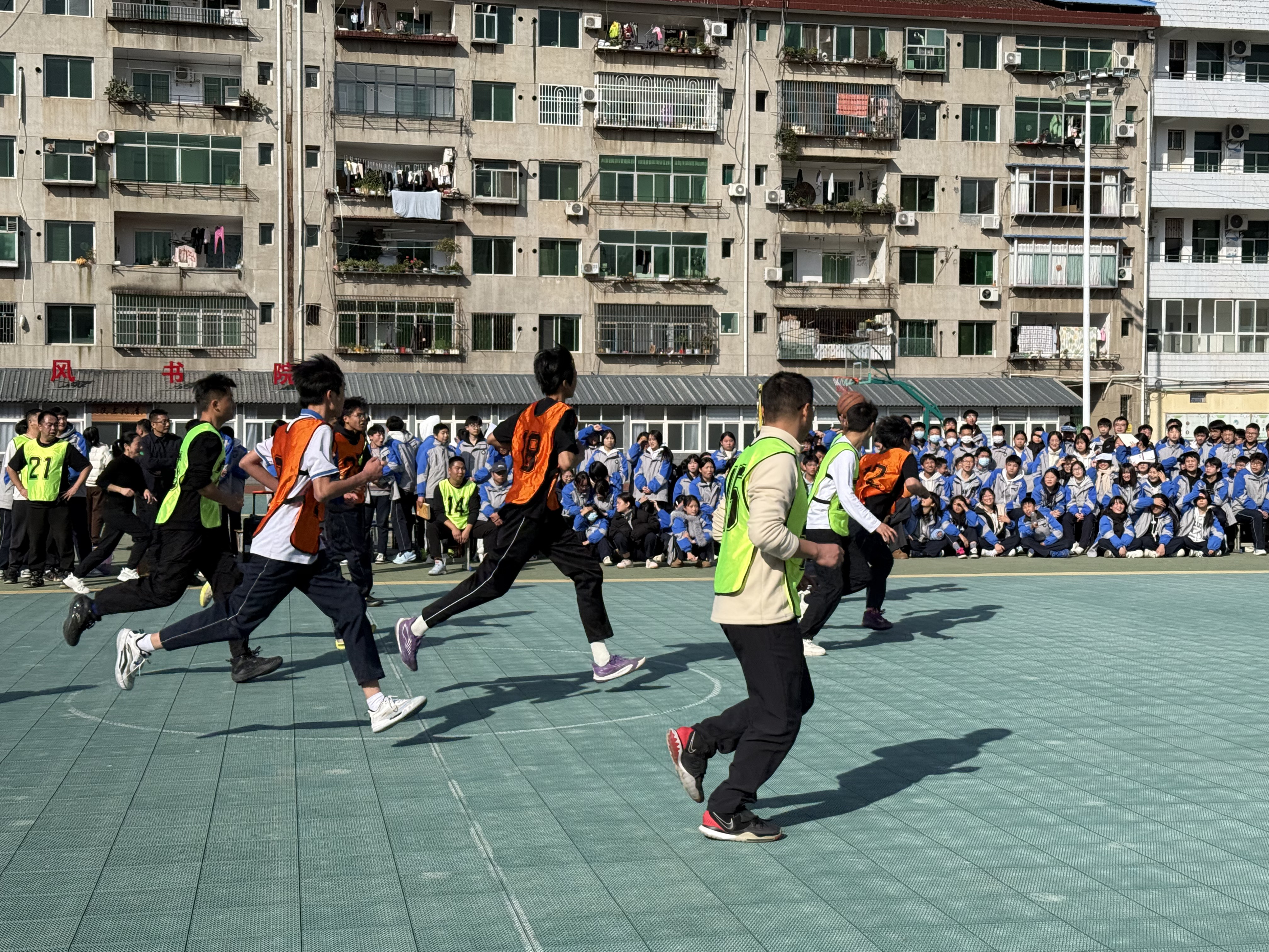 哨声响起,球员们迅速进入状态,传球、运球、投篮等动作行云流水,默契配合中尽显团队风采。赛场边,各班同学呐喊助威,欢呼声、加油声此起彼伏,将比赛气氛推向一个又一个高潮。