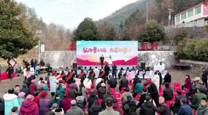 12月29日上午,汉阴县平梁镇酒店村大坪安置点广场热闹非凡,由县委宣传部、平梁镇联合主办的 “弘扬孝义文化・共建文明乡村” 主题活动在此举行,以文艺展演、典型表彰、文明宣讲、农产品展销等多元形式,让传统美德扎根乡土,为乡村振兴注入精神动能。