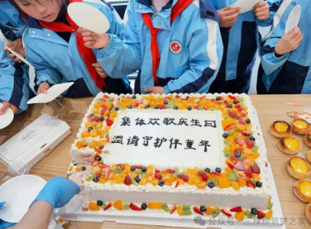 “爱心妈妈”们将蛋糕轻轻递到每个孩子手中,