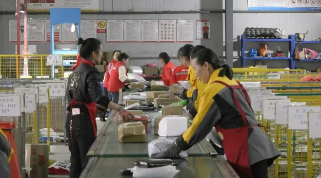 在汉阴县快递物流园区,货运车辆进出繁忙,多条自动化分拣线高速运转,工作人员快速分拣、扫描各类年货包裹,确保包裹“当日到达、当日派送”。