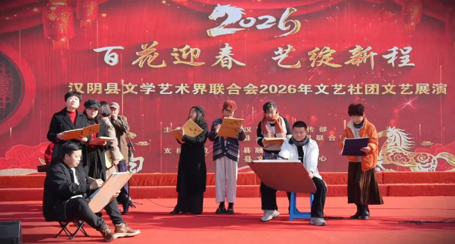 2月10日,汉阴县文联2026年文艺社团文艺展演活动在凤凰广场热情上演。来自全县14个文学艺术协会的成员齐聚一堂,通过一场自编自演、原汁原味的文艺演出,为当地群众献上了一份精彩纷呈的春节文化大餐。