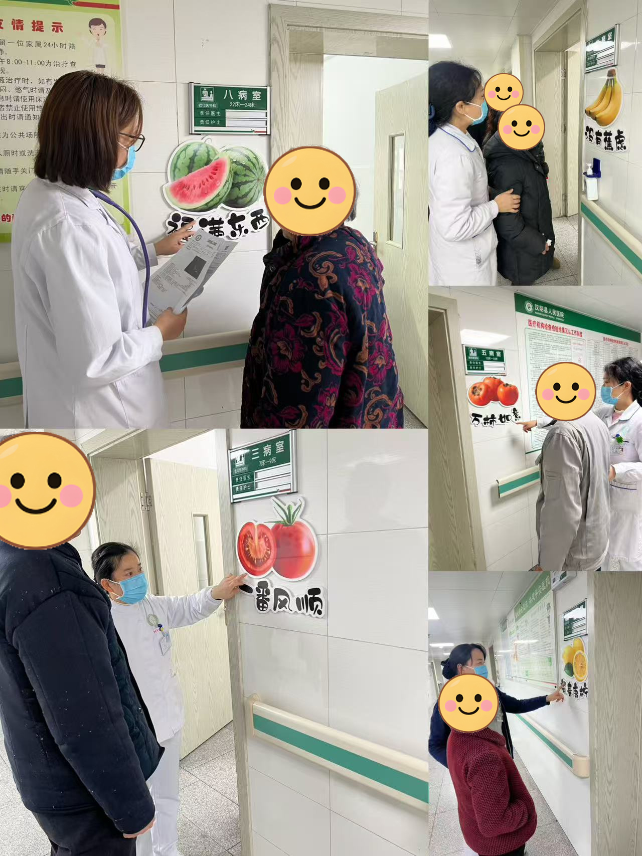 老年病区患者伴随记忆力减退、认知功能下降,对数字、文字类的床号信息难以识记,常常记不清自己的病房位置,给日常诊疗、康复活动及家属探访带来诸多不便。为破解这一护理难题,汉阴县人民医院老年病区医护团队创新推出水果图形病房标识,用色彩鲜明的水果图案替代冰冷的数字床号,搭配暖心寄语,让老年患者在熟悉的意象中找到归属,在字里行间感受医护关怀。