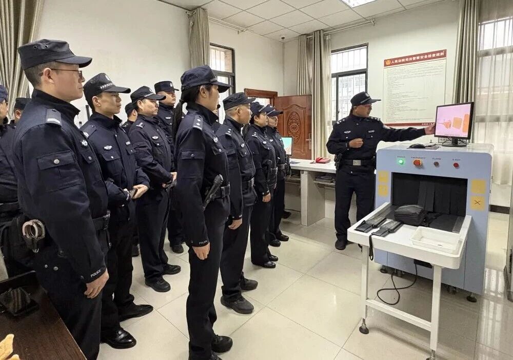 培训紧扣实战需求,采取“理论讲解+实操演练+情景模拟”相结合的方式进行。围绕《人民法院司法警察安全检查规则》,组织大家系统复习人民法院安全检查执法依据、岗位职责、流程规范与风险防控要点,并重点讲解了身份核验、危险物品识别、设备操作、特殊情况处置等关键环节。实操中,参训人员逐一练习通过式安检门、X光检测仪、手持金属探测器等装备的规范使用,熟练掌握人身检查、开包复检、图像判读等技能。随后,参训人员针对来访者为未成年人、精神类疾病患者、醉酒者等“特殊人员”和受检者携带危险物品等场景,模拟开展全流程处置演练,强化规范执法、协同配合与快速反应能力。