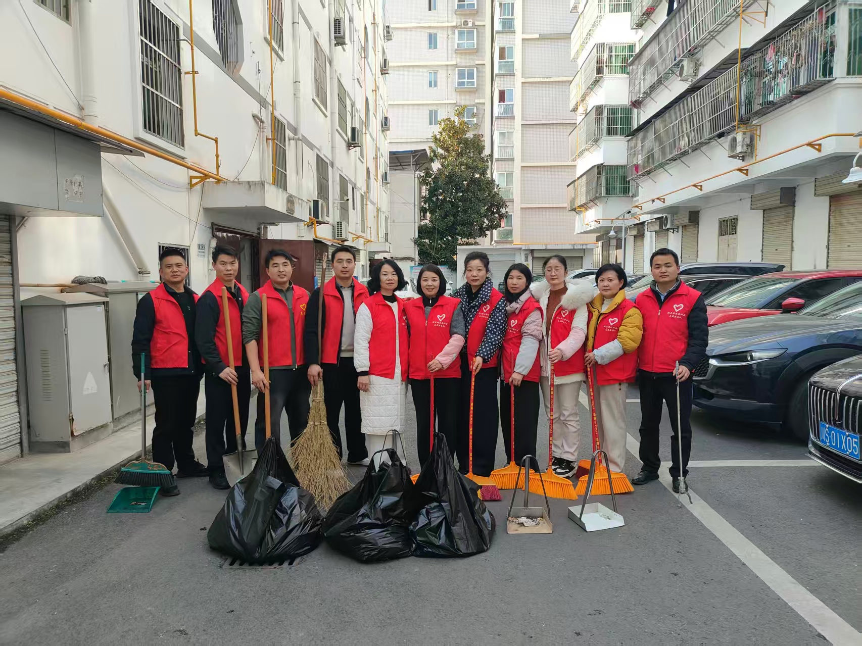 活动现场,志愿者们手持扫帚、铁锹、垃圾夹等工具,对家属楼院内、楼道、墙角及卫生死角进行全面清扫。大家分工协作、干劲十足,认真清理生活垃圾、枯枝杂草、堆放杂物,擦拭公共区域设施,不放过一处盲区、不留一个死角。经过集中整治,家属院环境焕然一新,居住氛围更加整洁舒适。