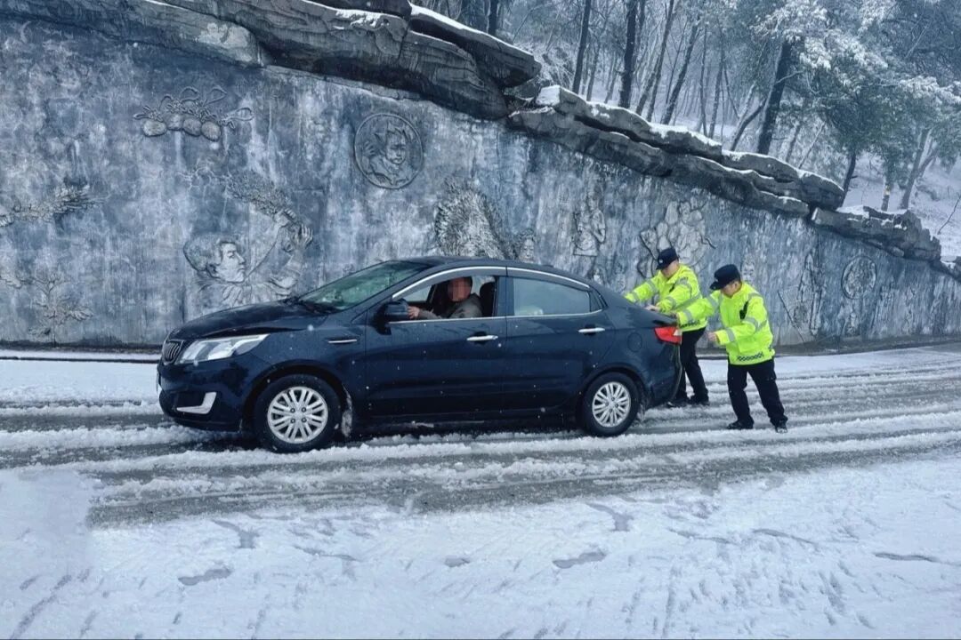 近日,受强冷空气影响,汉阴县汉漩路沿线突降风雪,部分路段出现积雪结冰、能见度低等情况,给车辆通行带来安全隐患。面对恶劣天气,汉阴县公安局交通管理大队迅速启动应急预案,以雪为令、闻令而动,组织警力坚守一线,通过喊话提醒、推车救援、警车带道等方式,全力保障辖区道路交通安全畅通,守护群众平安出行。