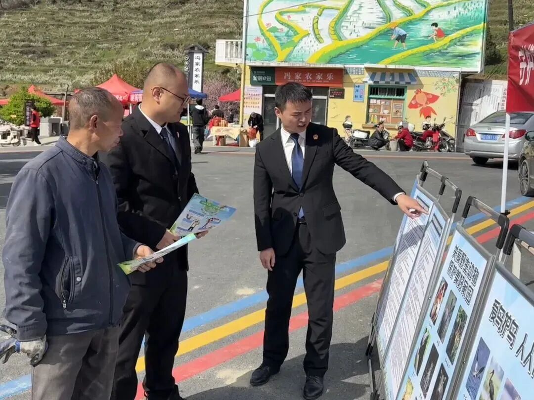 此次宣传以3月1日正式施行的《安康市汉阴凤堰梯田保护与利用条例》及野生动植物保护相关法律法规为重点,通过穿插几个有趣的乡间传说和地方典故,法庭干警将展板上有关梯田遗产的保护措施和文明旅游的注意事项传达给在场游客,并把印有秦岭地区珍稀野生动植物的宣传册交到游客手中,提醒大家文明绿色旅游,守护自然生态。