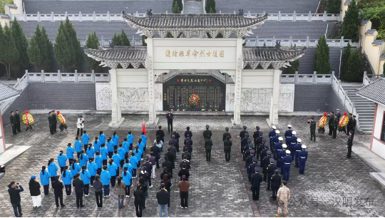 活动当天,烈士陵园内松柏苍翠、庄严肃穆。全体人员列队整齐,怀着对革命先烈的无限崇敬与深切缅怀,静立在纪念碑前。伴随着低沉肃穆的《献花曲》,代表们缓步上前,向革命烈士纪念碑敬献花篮、仔细整理缎带,并深深鞠躬致意,以此寄托对先烈的追思与敬意。随后,全场人员低头默哀三分钟,深切缅怀革命先烈的不朽功勋。