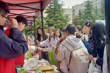 活动现场,双河口镇第一书记与驻村队员们精神饱满、热情高涨,在展台前一一介绍着从家乡带来的特色产品,争先当起好物推介官。嚼劲十足、可口美味的汉阴豆干,酥香脆甜、入口化渣的炕炕馍,醇香鲜美、回味无穷的果蜜红茶等农特产品整齐陈列,吸引众多师生驻足采购。与此同时,美食专区更是排起长队,刚出锅的烩面片热气腾腾,金黄酥脆的油炸饺子香气四溢,不少学子边尝边赞,纷纷扫码下单,以实际行动支持乡村振兴。