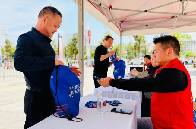 发放现场,领物窗口依次排开,志愿者们热情招呼每一位跑友,有序引导大家核对信息、递上参赛包,整个过程流畅而温馨。