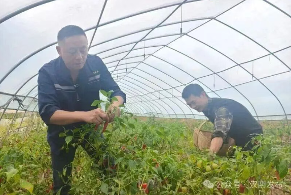 金秋十月,在汉阴县城关镇新星村,一幅丰收的画卷在设施农业大棚里徐徐展开。走进连片的蔬菜大棚,扑面而来的是湿润的泥土气息和辣椒特有的辛香,一排排齐整的辣椒植株青翠欲滴,鲜红的辣椒缀满枝头,在秋日阳光的映照下格外喜人。村民们穿梭于田垄间,灵巧的双手上下翻飞,采摘、装筐、搬运,有条不紊,欢声笑语与忙碌身影交织在一起,奏响了秋日增收的“致富曲”。