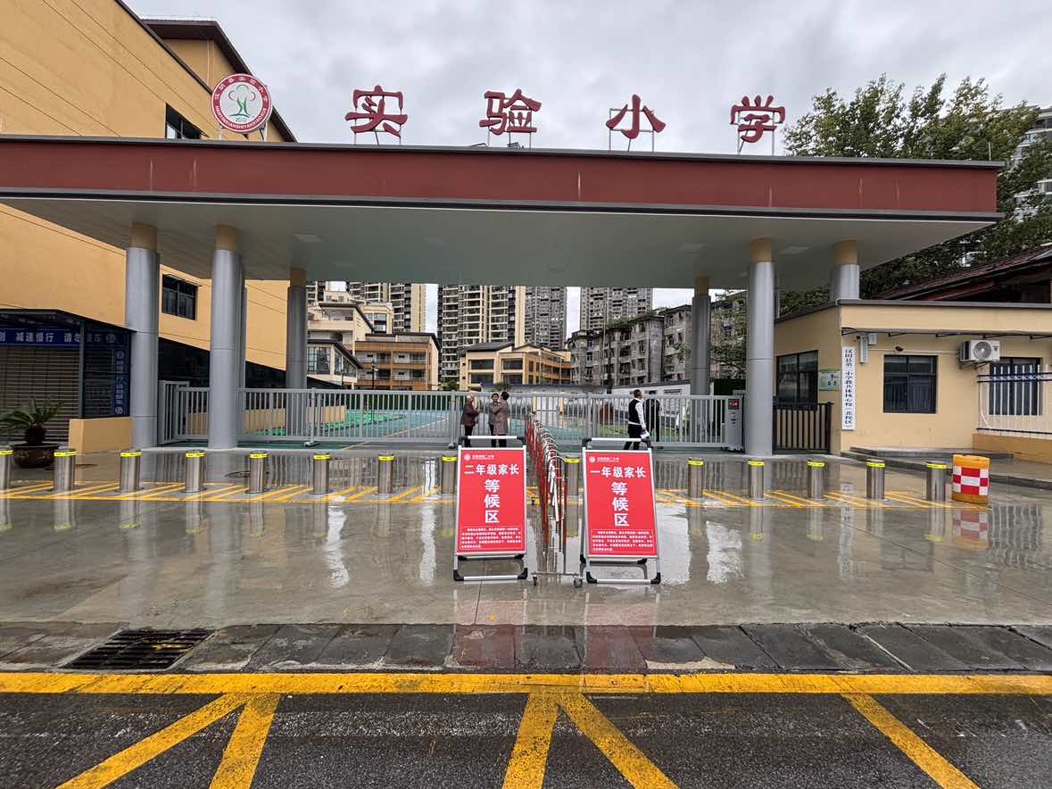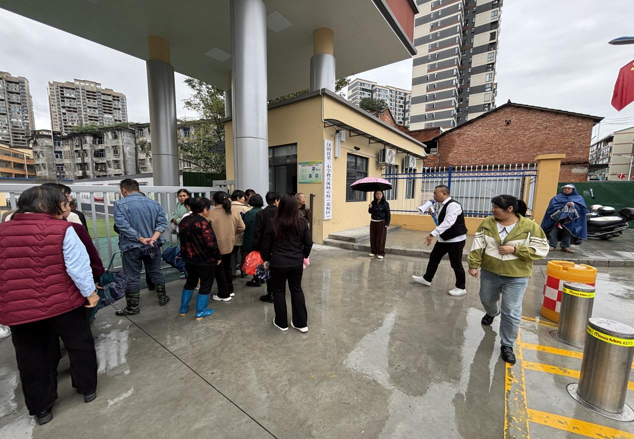 时空错峰机制高效落地:一年级家长提前五分钟入校,二年级家长待广播通知后有序进入。班主任在教室组织学生穿戴雨衣、强调纪律,家长到班接领,全程衔接顺畅、秩序井然。