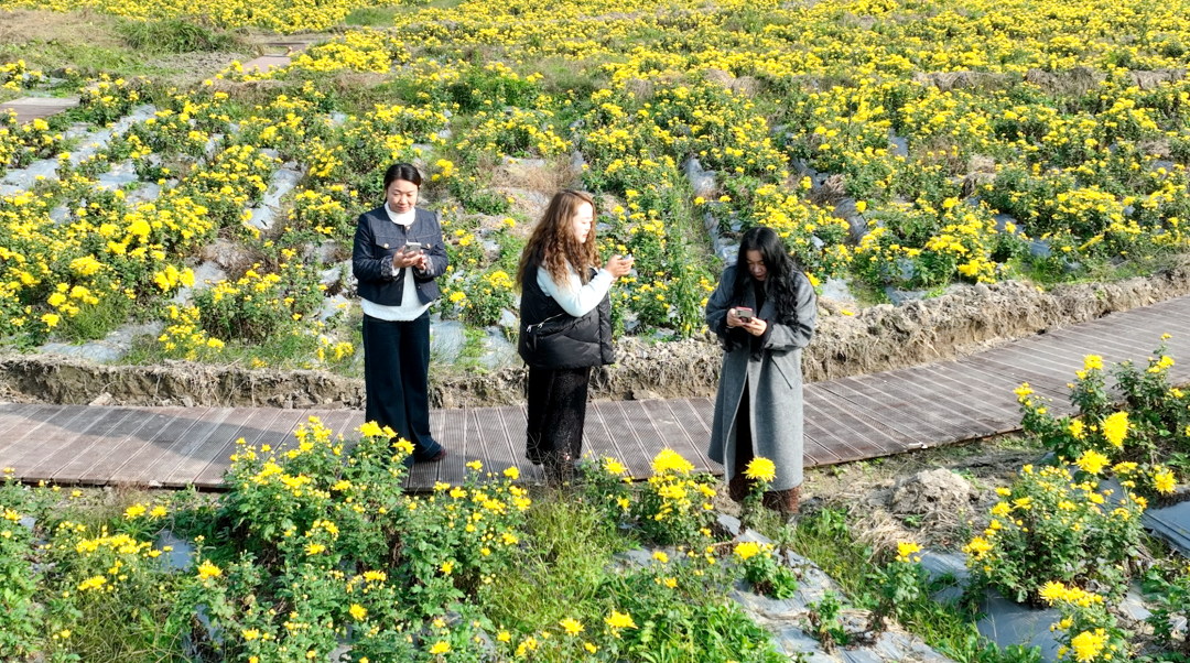 金黄的花海、淳朴的乡村、惬意的游人,构成了一幅人与自然和谐共生的美丽乡村画卷。下一步,五一村将持续优化旅游配套设施,举办菊花文化旅游活动,进一步提升乡村旅游品质,让金丝皇菊成为带动村民增收、推动乡村振兴的“致富花”。