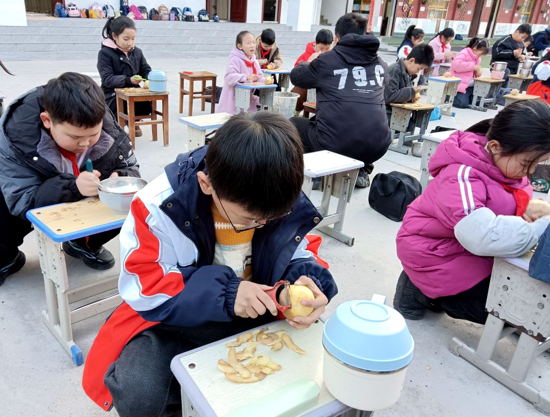 本次劳动技能大赛参与对象为全体学生,比赛项目分年级设定,贴合学生年龄特点。低段年级包括穿、系鞋带和剥大蒜,中段年级项目为碗筷清洁和刮土豆,高段年级则为衣物洗涤和手剥蛋。140余名学生齐聚操场,随着比赛号令的发出,孩子们个个精神抖擞,全神贯注地投入到紧张而又激动的比赛之中。一双双小手飞快地运转起来:有的小心翼翼剥着蛋壳,生怕一疏忽弄碎了蛋体;有的手握削皮器,力度适中地开始给土豆削皮;有的排列在水池两旁,仔细清洗自己的餐具和佩戴的红领巾……不一会工夫,一枚枚圆润的鹌鹑蛋、一粒粒洁净的大蒜瓣和一条条鲜艳洁净的红领巾便呈现于孩子们的面前。