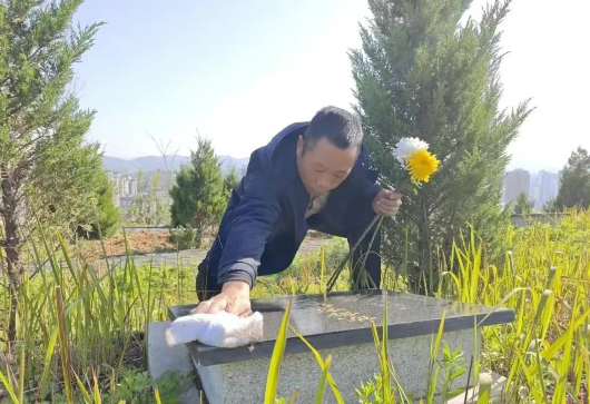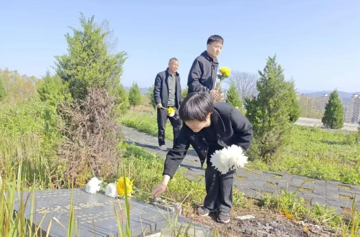 4月1日,在中堰村公益性墓地,工作人员向参与祭扫的群众免费发放白菊、黄菊等环保祭祀用品,倡导大家用敬献鲜花、擦拭墓碑、鞠躬行礼等文明方式缅怀先人,替代传统焚烧纸钱、燃放鞭炮的祭扫陋习。大家手持鲜花,依次为逝者敬献花束、擦拭墓碑,在庄重肃穆的氛围中,寄托对逝去亲人的思念与敬意。整个祭扫过程没有浓烟滚滚、没有鞭炮喧嚣,只有鲜花的芬芳与对先人的深切缅怀,让清明祭扫回归了追思感恩的本质。