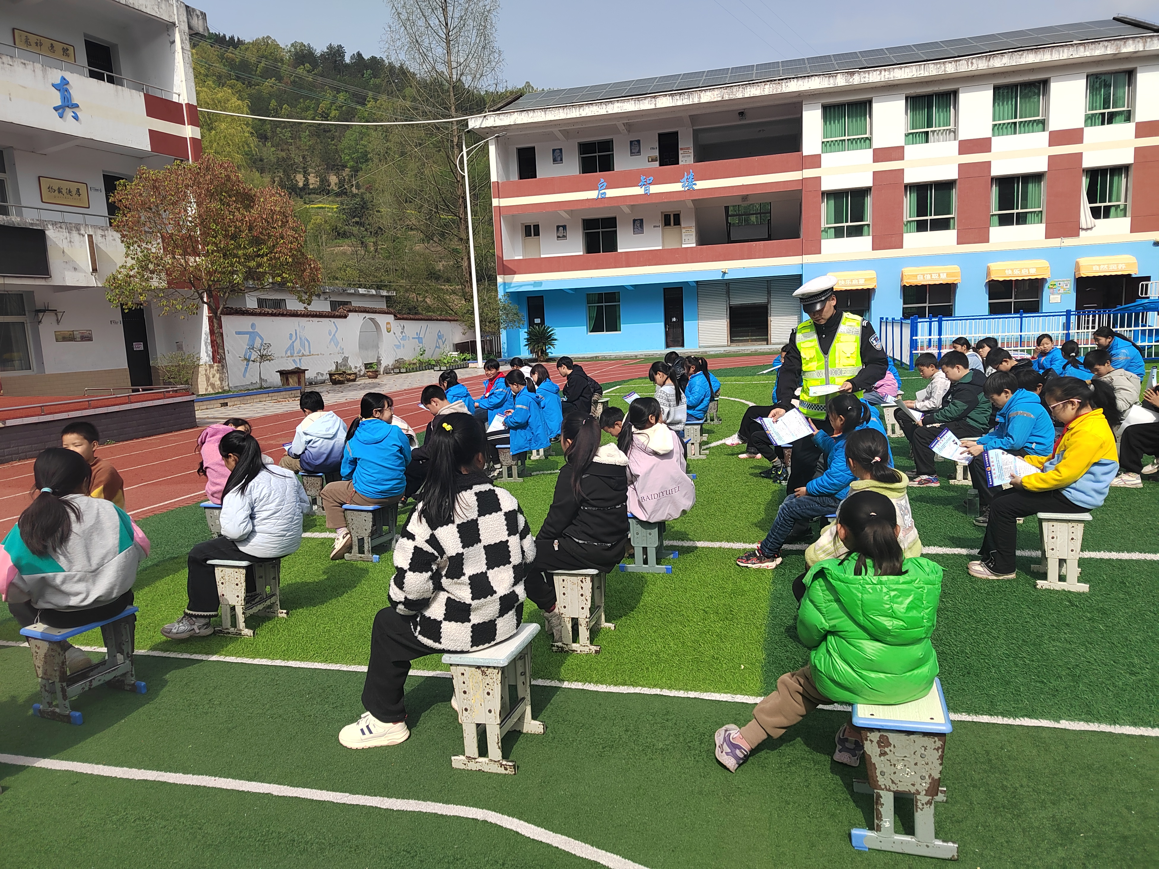 4月3日上午,观音河派出所民警走进观音河镇中心小学,以法治教育课、安全防范课、行为规范课为核心,开展专题法律及安全知识宣讲活动,讲好“金盾护苗”三堂课中的“学生课”。