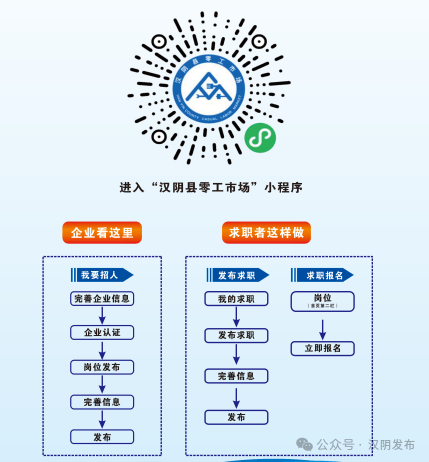②微信扫一扫进入“汉阴县零工市场”小程序,我要招人,线上发布岗位信息。