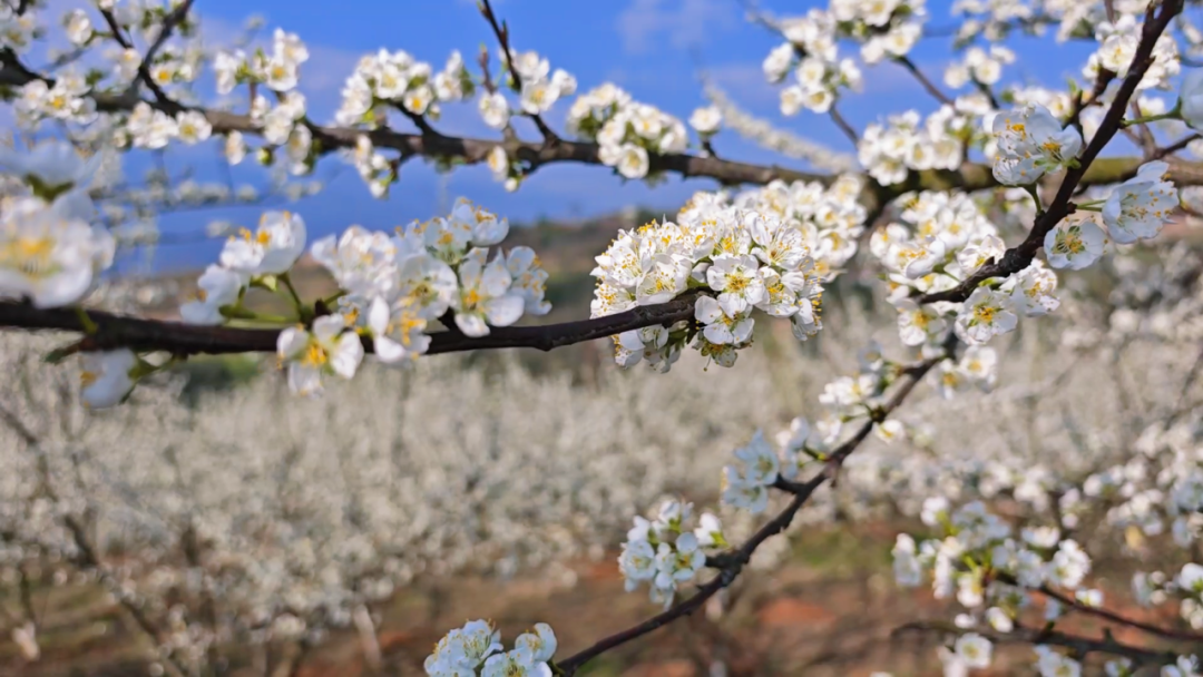 阳春三月,春意渐浓。走进汉阴县城关镇长窖村,放眼望去,连片的蜂糖李花正悄然绽放。350余亩洁白的花朵缀满山坡,层层叠叠,如云似雾,远远望去,仿佛一场春雪悄然落满山野。 置身花林之中,四周静谧无声,只有微风轻拂枝头,花瓣簌簌飘落。阳光透过花枝洒下斑驳的光影,洁白的李花在蓝天映衬下愈发素雅动人。远山如黛,近花似雪,一树树、一簇簇的李花静静开放,将春日里的乡村装点成一幅淡墨轻染的山水画。 眼下正值盛花期,据了解,今年天气晴好、气温适宜,花开得比往年更加繁盛。漫山遍野的洁白李花层层叠叠,从山脚延伸到山腰,与青翠的山林交相辉映,构成了一幅宁静而灵动的春日图景。花期预计将持续到3月20日前后。