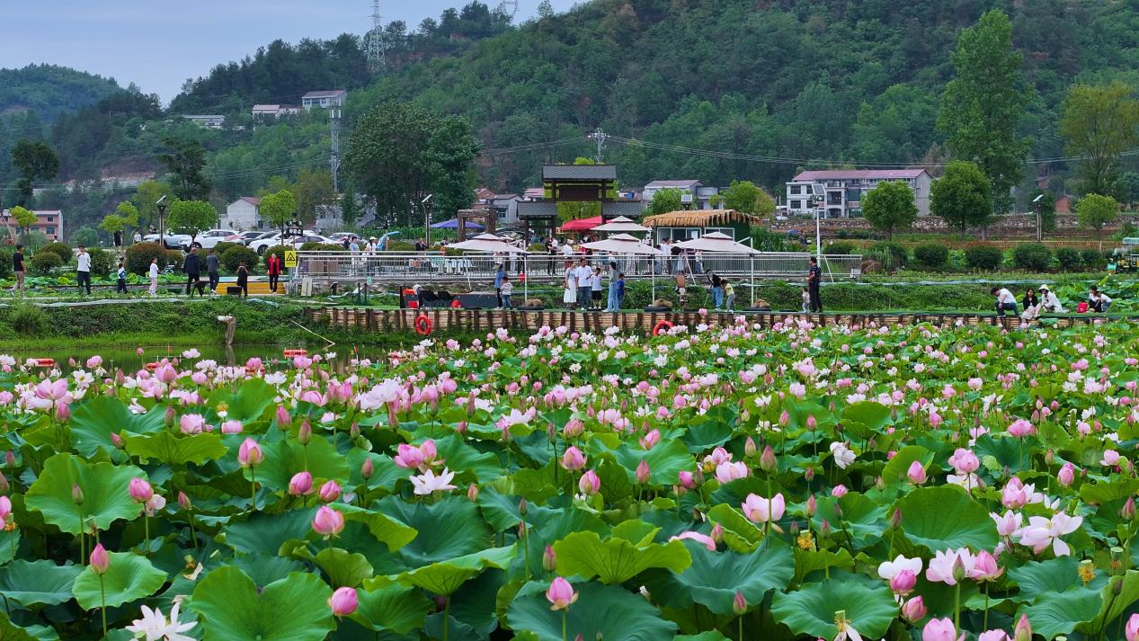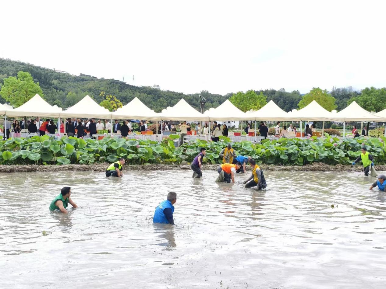创新“四用模式”,解锁生态高效种养密码。探索推行“一塘四用”生态种养新模式,让荷塘实现“土里生金、水里产银、空中见效”的立体收益。荷塘土里种植莲藕,亩产约3000斤,亩产值达9000元;水中两季养殖龙虾,亩产约300斤,亩产值9000元;荷叶开发为荷叶茶、荷叶面条等特色产品,莲花、莲蓬直供游客市场,亩均额外收益1500元,综合亩均产值突破万元,实现了生态效益与经济效益的双赢。