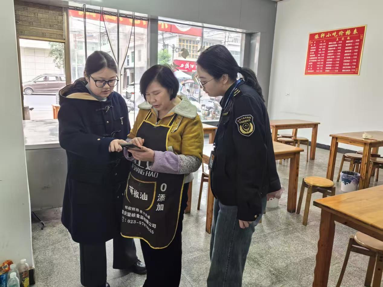 针对辖区不少商户年龄偏大、智能手机操作不熟的实际困难,双乳市监所主动转变服务方式,变“坐等申报”为“上门服务”,把办公桌搬到商户家门口,用贴心举措为经营主体保驾护航。
