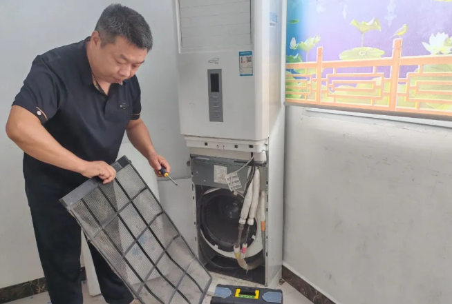 得知社区留守老人家中的空调出了问题,孙启兵立刻提上工具箱来到老人家中。他拿出钳子、扳手、电笔等工具,拆开空调面板,仔细查找故障原因,经过修理,空调很快恢复正常。“以后还有啥问题直接联系我就行了,我免费上门帮你们解决。”维修完成后,孙启兵还向两位老人宣传安全用电知识。