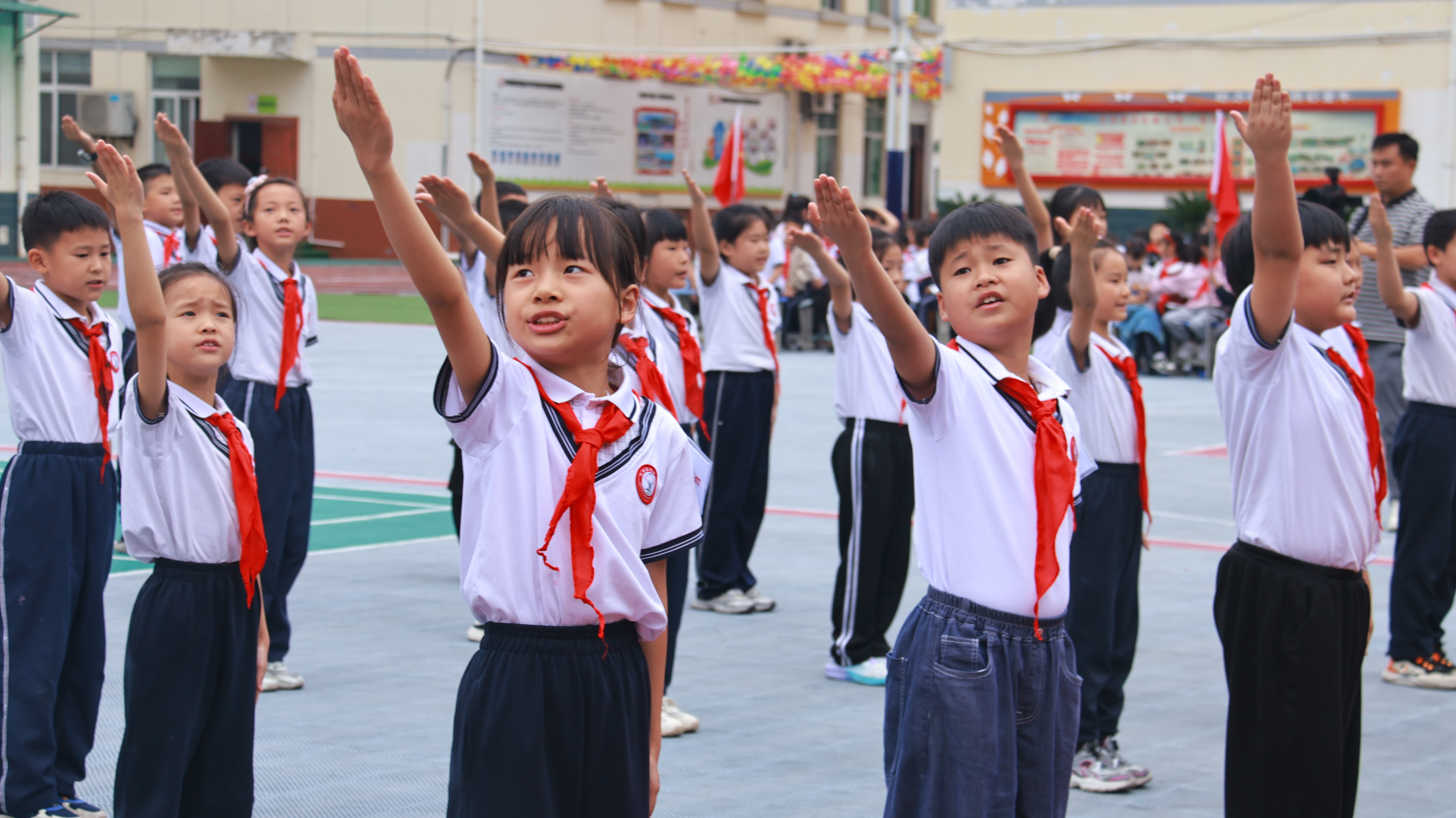 活动在三级报告中拉开序幕,比赛包括“出旗”“唱队歌”“敬标准队礼”“规范佩戴红领巾”等核心环节。佩戴红领巾时,队员们手指翻飞,披巾、打结动作流畅规范,鲜红的领巾在胸前挺括端正;敬队礼环节,队员们身姿挺拔,右臂高举过头顶,眼神坚定,每一个动作都透着对少先队组织的崇敬;齐唱《中国少年先锋队队歌》时,嘹亮的歌声响彻校园,激昂的旋律中满是少年们的朝气与担当。评委团依据动作标准度、精神面貌等维度现场打分,最终评选出“礼仪示范中队”3个、“礼仪小标兵”19名。