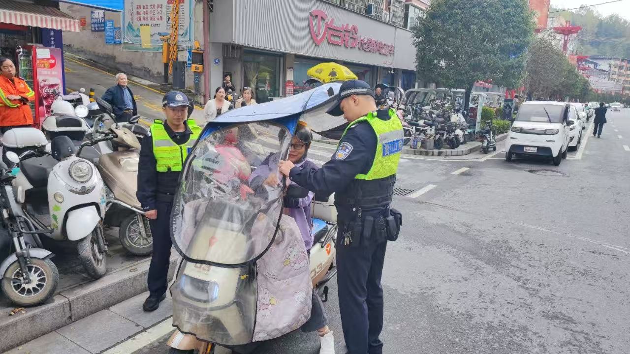 行动中,大队科学部署警力,构建“定点查纠”与“流动巡查”相结合的双向联动勤务机制,形成全覆盖、无盲区的整治网络。执勤民辅警以人流、车流密集的路口、市场、小区、商超周边为重点查缉区域,对过往车辆做到“见违必纠”。发现非法加装的遮阳棚,坚持“发现一起、拆除一起”原则,现场督促车主立即拆除、恢复车辆原状,确保整治取得立竿见影的效果。同时,坚持“宣教一体”原则,现场化身“安全讲解员”,向驾驶人深入剖析加装篷罩,在破坏平衡、遮挡视线、扩大盲区等方面的巨大危害,引导群众从“被动整治”转向“主动拆除”,自觉摒弃交通陋习,筑牢道路交通安全思想防线。