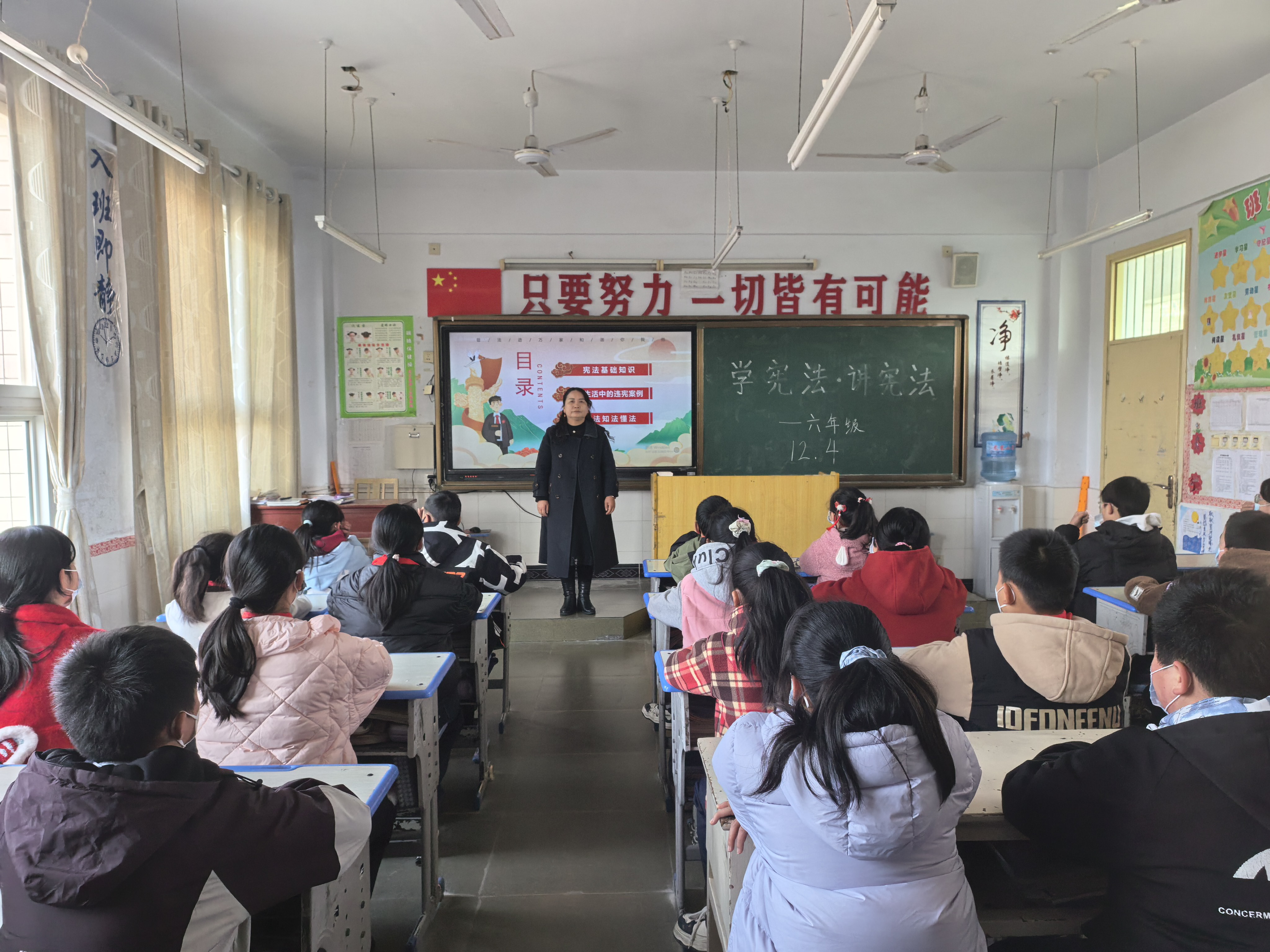 升旗仪式上,少先队员代表以《与宪法同行,做法治少年》为题发言,结合校园秩序、权利保护等日常案例,阐释宪法根本大法地位,呼吁同学们学法、敬法、传扬法治精神,践行尊法学法守法用法准则。随后,各班级开展主题班会,班主任通过法治动画、知识问答、分享法治小故事等形式,让抽象宪法知识变得通俗易懂。